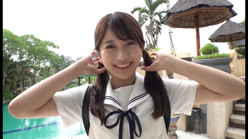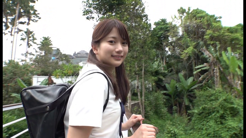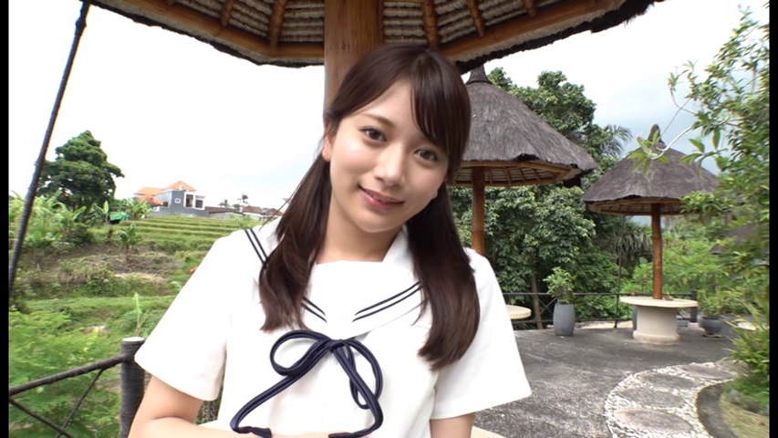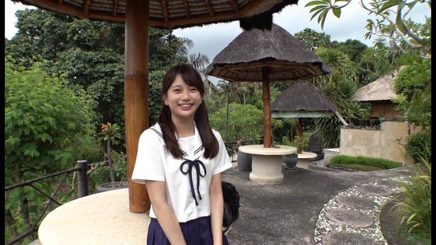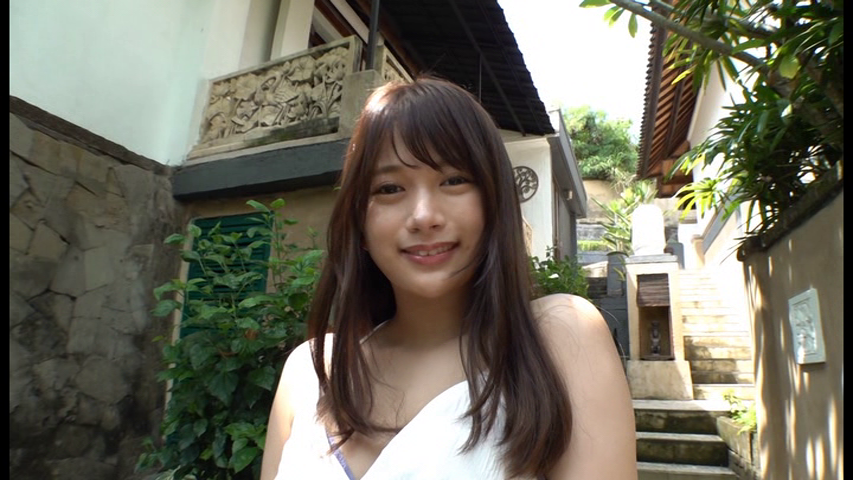 「はじめまして、北岡果林です。初めてのバリ島すごく暑いです。がんばるので最後まで観てください。」