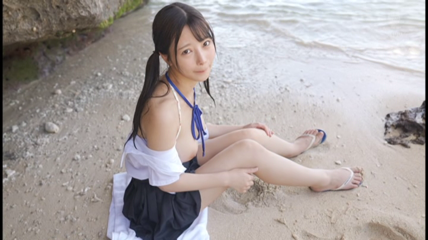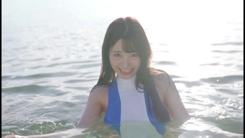 そして再び海のシーンではグラビアアイドル時代と同じ水着を着て胸を開いて、